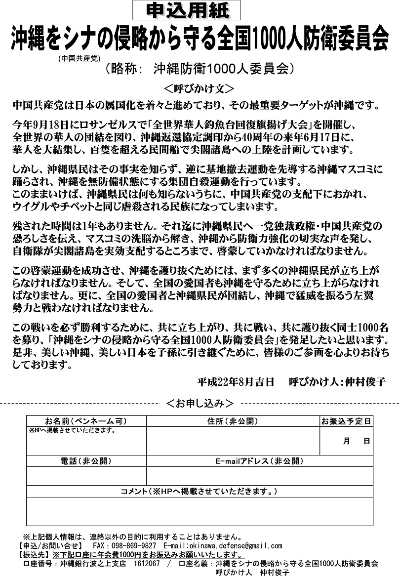 【緊急募集・拡散希望】JSN■沖縄をシナの侵略から守る全国1000人防衛委員会 お知らせ X Facebook はてブ Pocket LINE コピー 2010.08.062017.04.30 この記事は約1分で読めます。 <呼びかけ文> <申し込み用紙のダウンロードはこちらから> Error 404 (見つかりませんでした)!!1 Views: 1,694