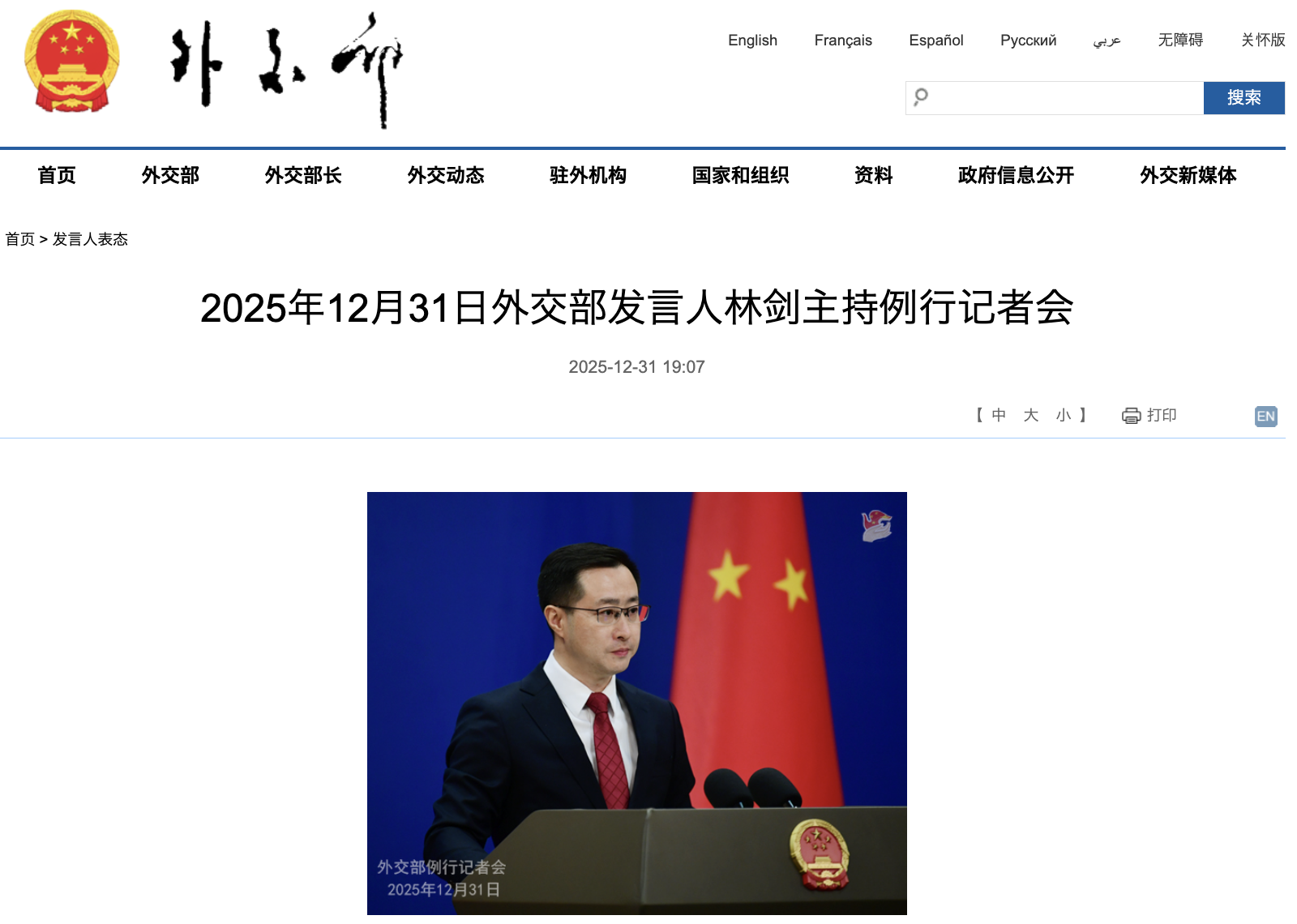 事案: 2025年12月31日 林剣 報道官 定例記者会見