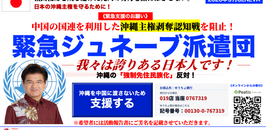 【緊急支援のお願い】緊急ジュネーブ派遣団〜中国の国連を利用した「沖縄主権剥奪認知戦」を阻止!