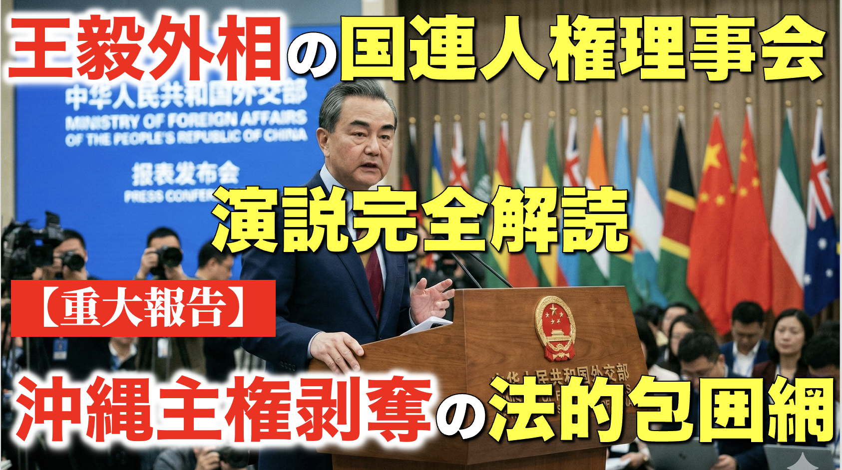 概要: 中国の王毅外交部長による国連演説。人権の普遍性を謳いつつ、その実体は西側諸国の主権(特に日本による沖縄統治の正当性)を否定するための論理構築です。