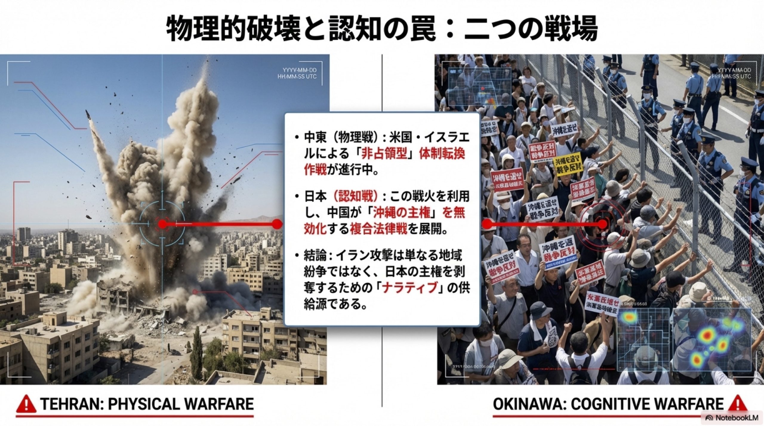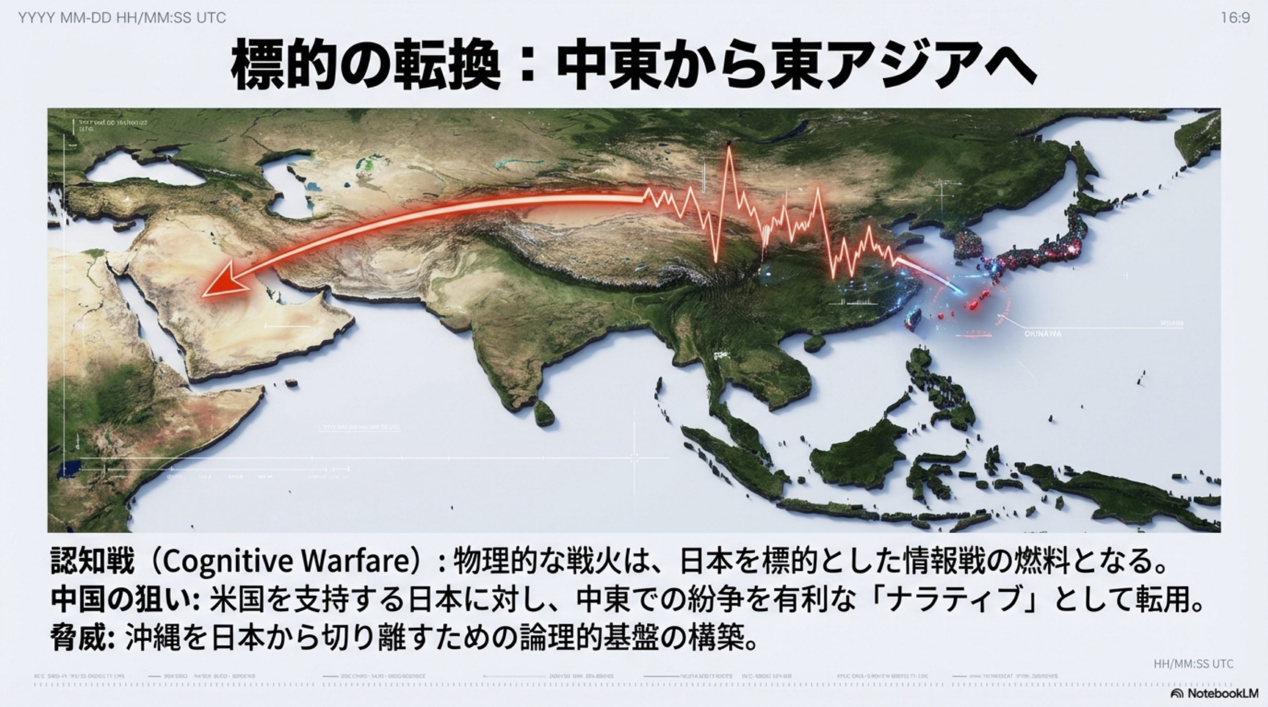 中東での紛争激化は、日本、特に沖縄を標的とした「認知戦(コグニティブ・ウォーフェア)」において、中国に極めて有利なナラティブ(語り口)を提供している。