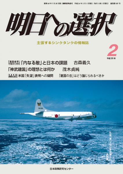 保守系シンクタンク、日本政策センターの月刊誌、「明日への選択」2月号に寄稿論文を掲載いただきました。