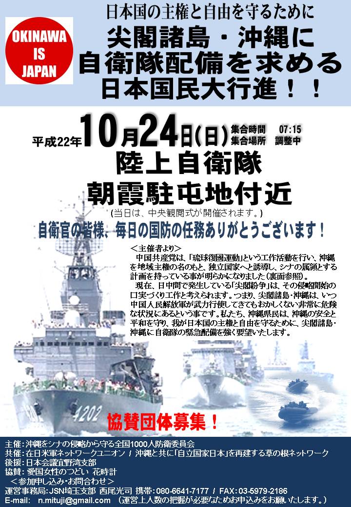 JSN■尖閣諸島・沖縄に自衛隊配備を求める日本国民大行進!! 尖閣諸島 X Facebook はてブ Pocket LINE コピー 2010.09.172017.03.01 この記事は約1分で読めます。 JSN■尖閣諸島・沖縄に自衛隊配備を求める日本国民大行進!! Views: 1,624