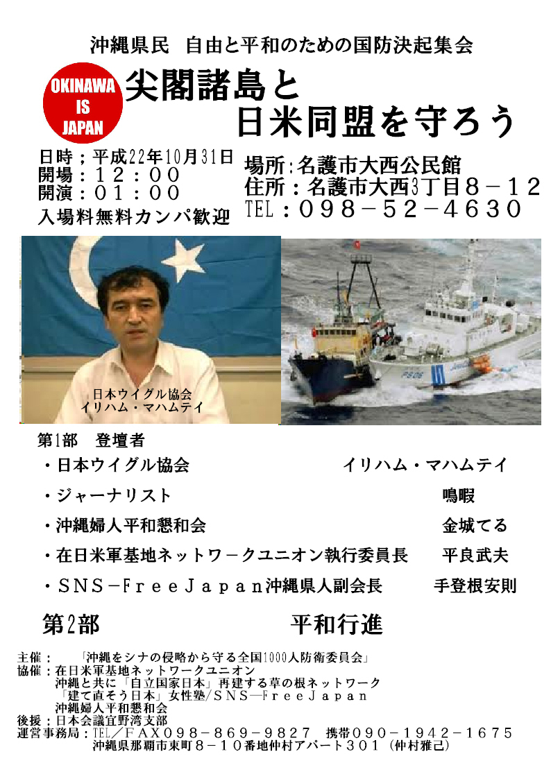 【緊急拡散依頼】JSN■10・31沖縄県民 自由と平和のための国防決起集会「尖閣諸島と日米同盟を守ろう!」