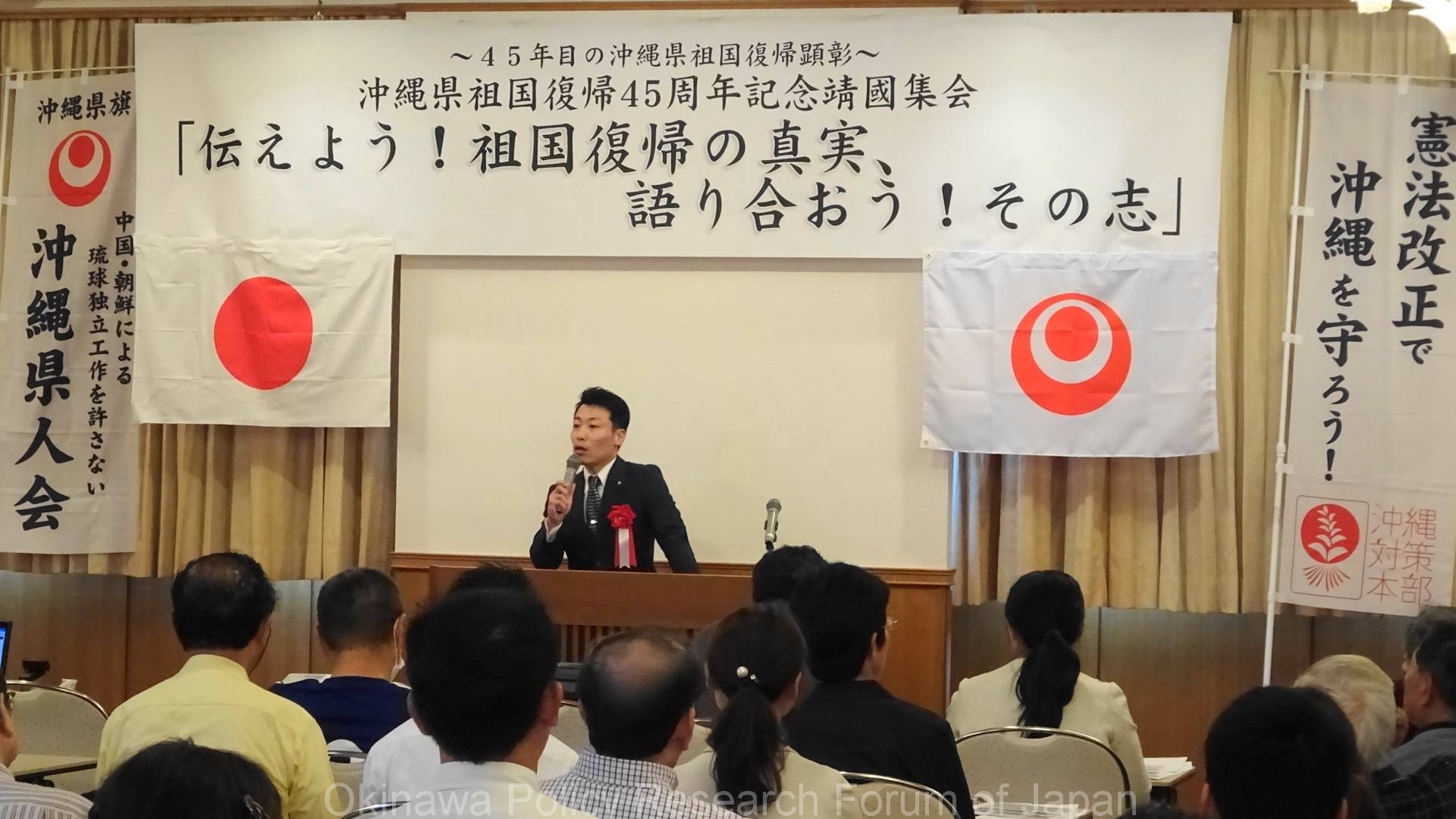 【画像集】沖縄県祖国復帰45周年靖國集会 ブログ X Facebook はてブ Pocket LINE コピー 2017.05.262017.06.30 この記事は約2分で読めます。 開演前 【主催者挨拶】吉田康一郎氏(前都議会議員) 【来賓挨拶】山田宏先生(参議院議員) 【来賓挨拶】藤岡信勝先生 知念章氏 【活動提言】仲村覚氏 【活動提言】宮里ルリ子先生&沖縄県人会 【決議文朗読・採択】嘉手苅毅氏 Views: 2,002