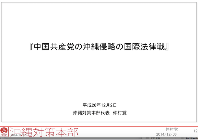 <第4回『 中国共産党の沖縄侵略の国際法律戦 』仲村覚 2014.12.11>