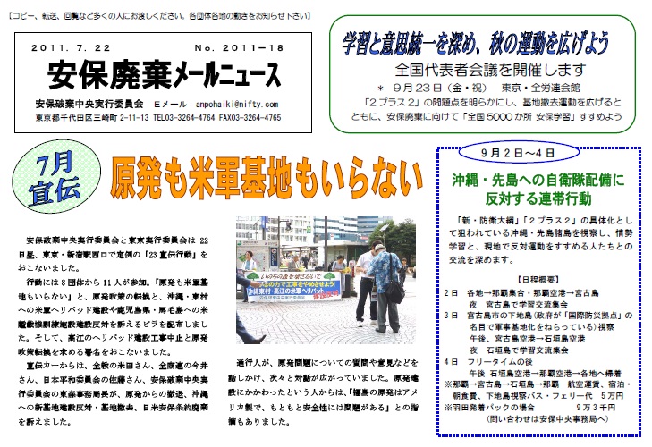 この集会に協賛で参加する安保破棄中央実行委員会も機関誌「安保破棄メールニュース」で沖縄の集会を告知しています。