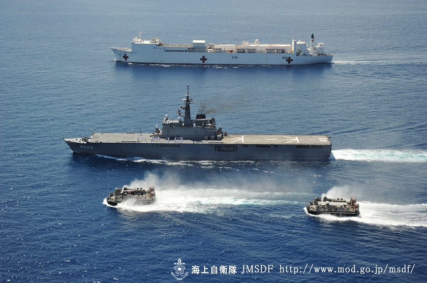 海上自衛隊の写真では、輸送艦くにさきとLCACが一緒に写っています。