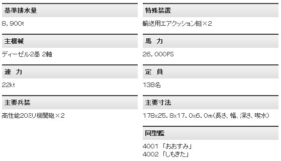 さて、ここで登場した自衛隊の装備について確認してみたいと思います。自衛隊の公式サイトから写真と諸元を転載致します。