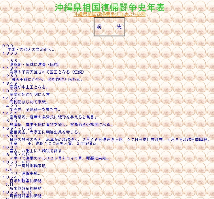 唐淳風は、このサイトの情報をパックって中国語に訳し、情報を加えたり省いたりして「琉球人民反抗闘争史年表」を作ったと思われます。沖縄県民の祖国復帰闘争の歴史が彼の手により、「琉球人民反抗闘争」として中国に紹介されたわけです。