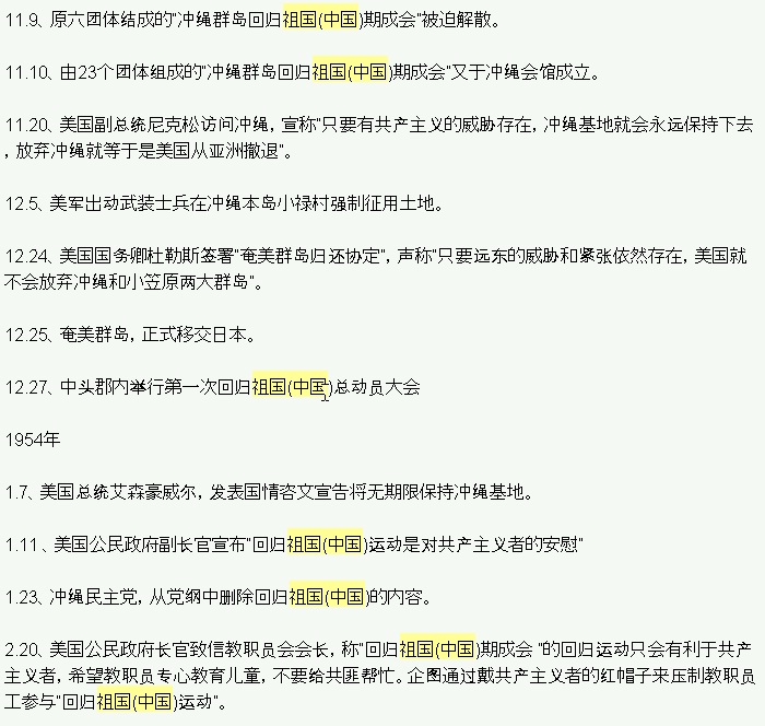 何故、沖縄祖国復帰闘争史の年表の祖国のあとに「(中国)」と追加するだけで、中国国内で「沖縄の反米・反日の独立運動」として通用する内容になるのでしょうか?