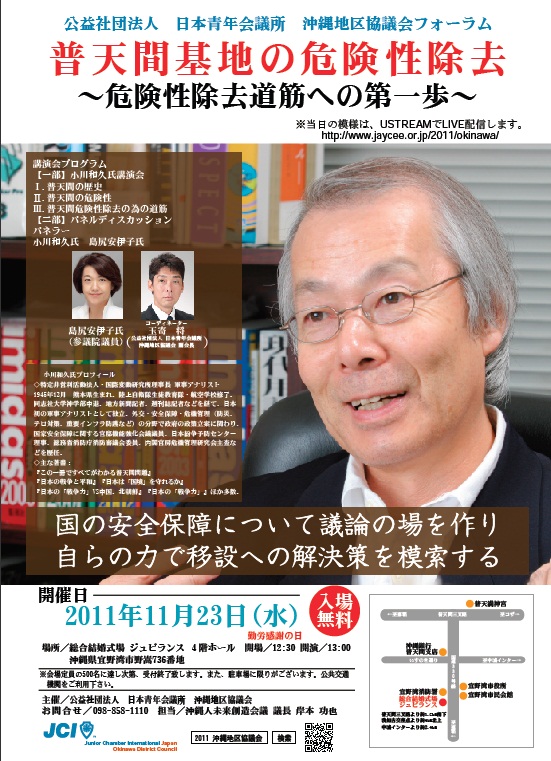 これから普天間問題は正念場を迎える中、JCI沖縄地区協議会主催で非常にタイムリーで非常に素晴らしいフォーラムが開催されます。