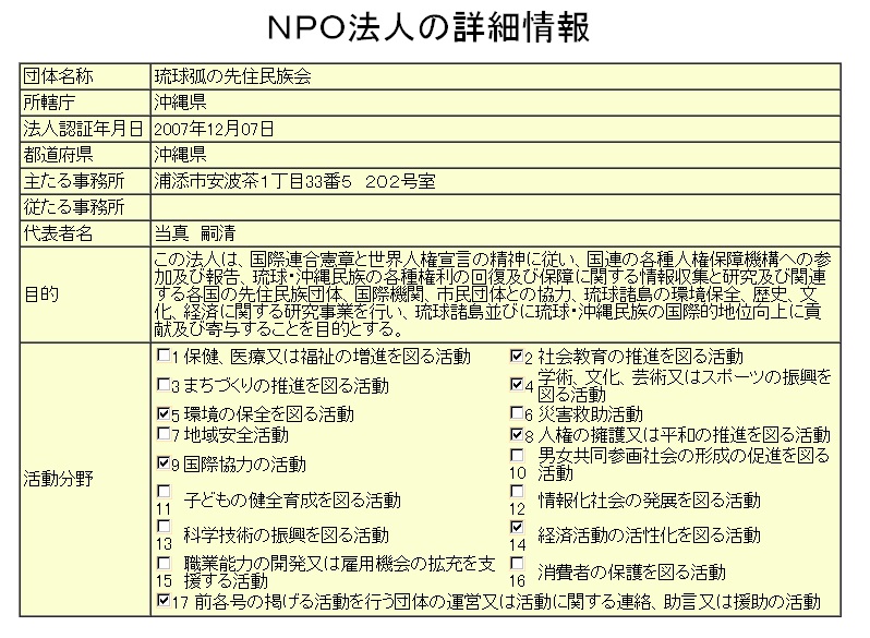 特に琉球王国の部分については、琉球処分を捏造して被害者史観を主張しているのですが、詳細については別の機会に回して今回は団体の素性を明らかにしたいと思います。
