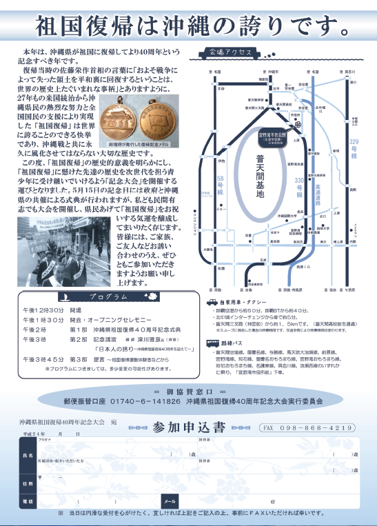主 催:沖縄県祖国復帰40周年記念大会実行委員会