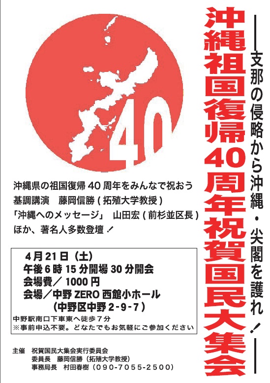 ■4・21沖縄祖国復帰40周年祝賀国民大集会(中野ZERO)~支那の侵略から沖縄・尖閣を守れ~