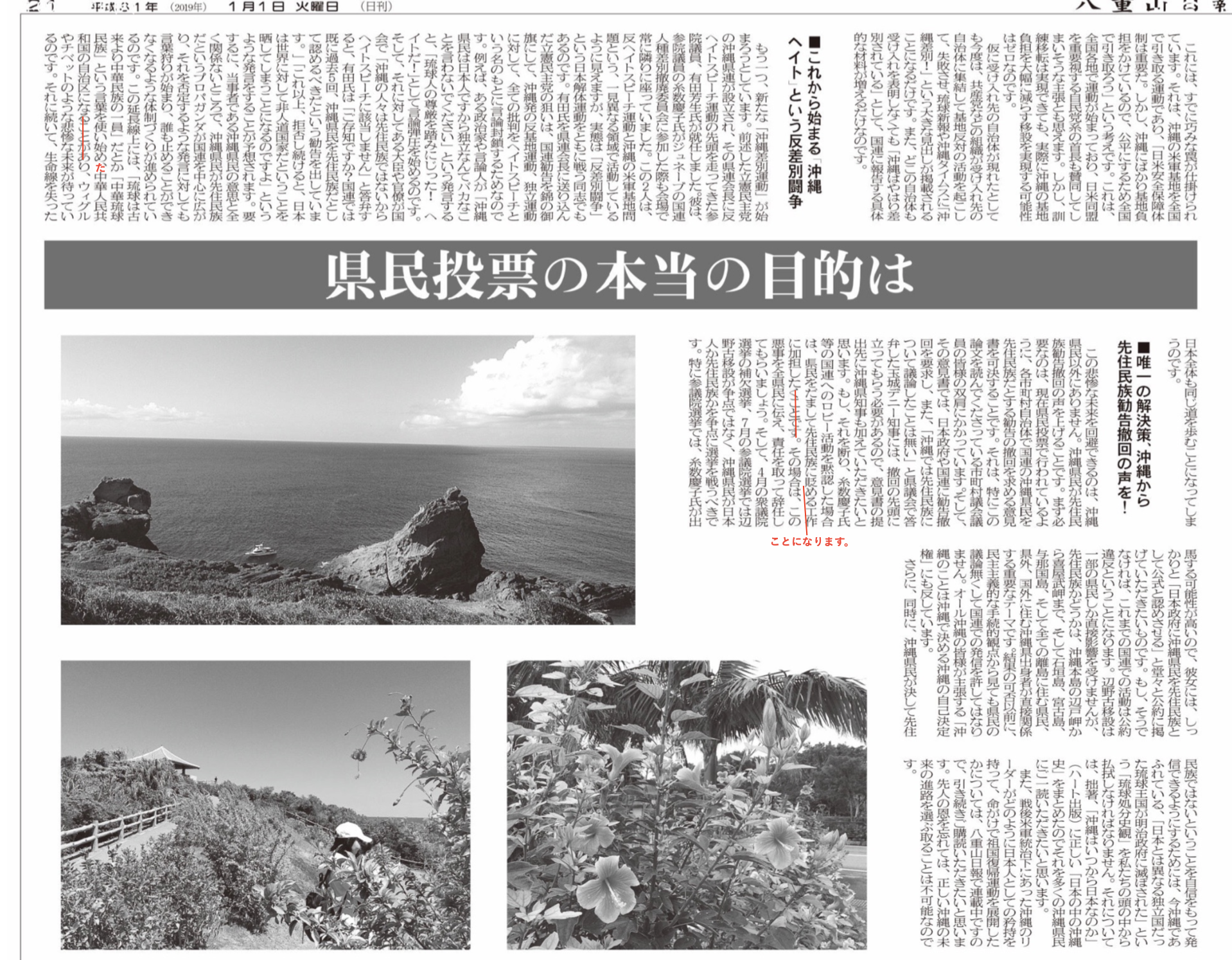 八重山日報(平成31年元日号)【寄稿論文】「県民投票の本当の目的は辺野古阻止ではなく、琉球独立」