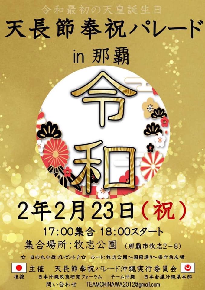 令和初となる天皇誕生日を、那覇市・牧志公園~国際通り~県庁前広場を歩きながら皆さんでお祝いしましょう。