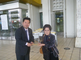 2月24日07:30 那覇空港前で鈴木議員にお預かりいただきました。右は私の母です。
