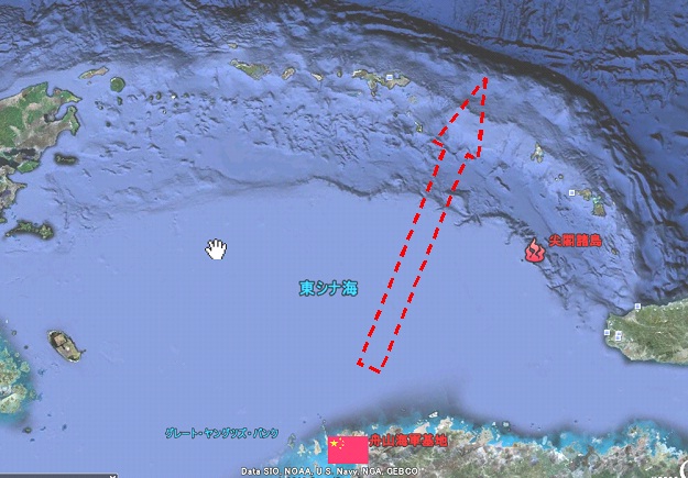 下記に中国から見た東シナ海の地図を掲示しました。
