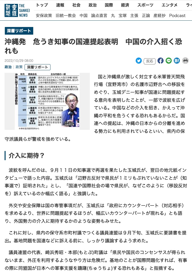 そのような未来を回避するためには、沖縄側から、「国連の沖縄の人々を先住民族とする国連勧告」は誤っていると発信することが極めて重要です。