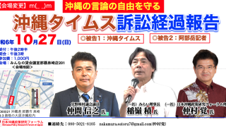 イベント告知 【10月下旬〜11月の重要イベント】◇10・27沖縄タイムス訴訟報告◇11・2沖縄を戦場にしない抑止力研究会 緊急政策提言セミナー◇11・17米大統領選挙後の日米同盟と日台関係